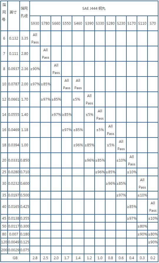 鋼丸粒度分布表